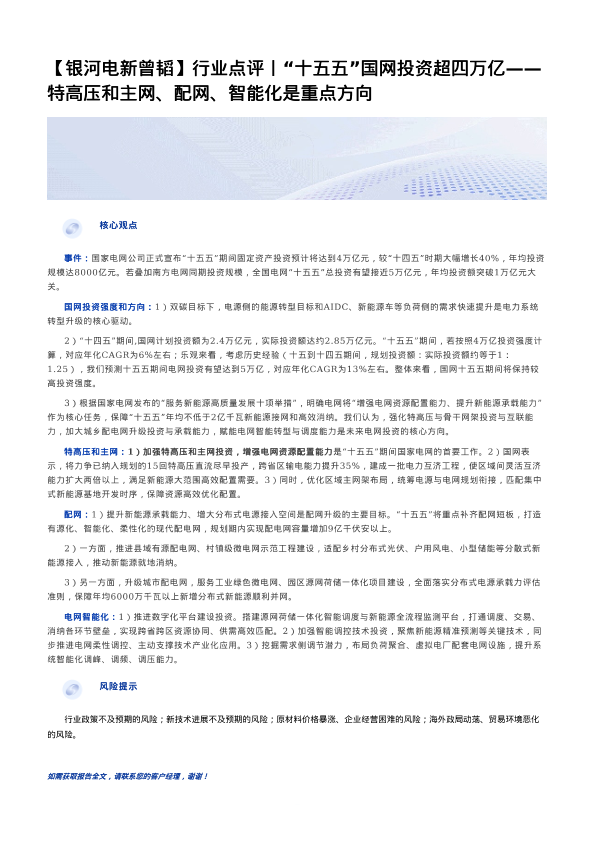 【银河证券】【202603】“十五五”国网投资超四万亿——特高压和主网、配网、智能化是重点方向-3页
