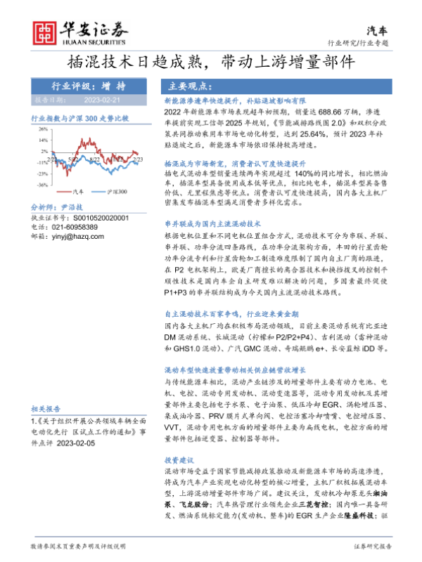 【华安证券】【20230221】汽车行业专题:插混技术日趋成熟,带动上游增量部件-27页