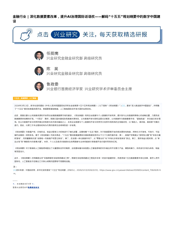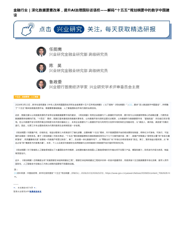 【兴业研究】【202603】深化数据要素改革,提升AI治理国际话语权——解码“十五五”规划纲要中的数字中国建设-4页