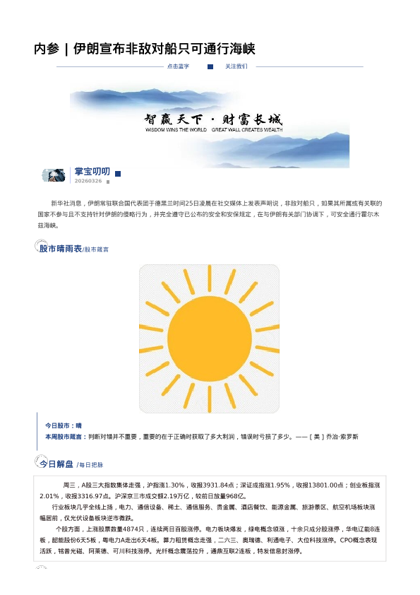 【长城证券总部投顾团队】【202603】伊朗宣布非敌对船只可通行海峡-3页