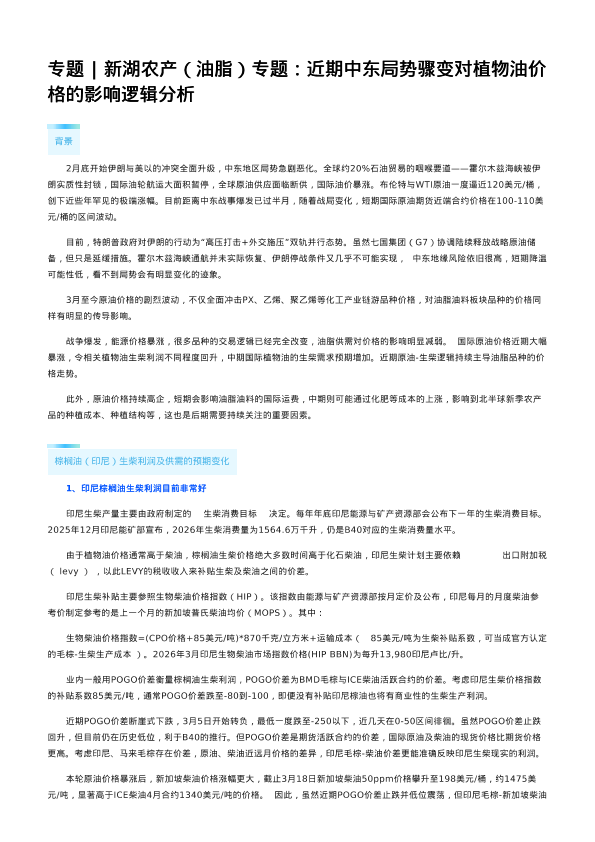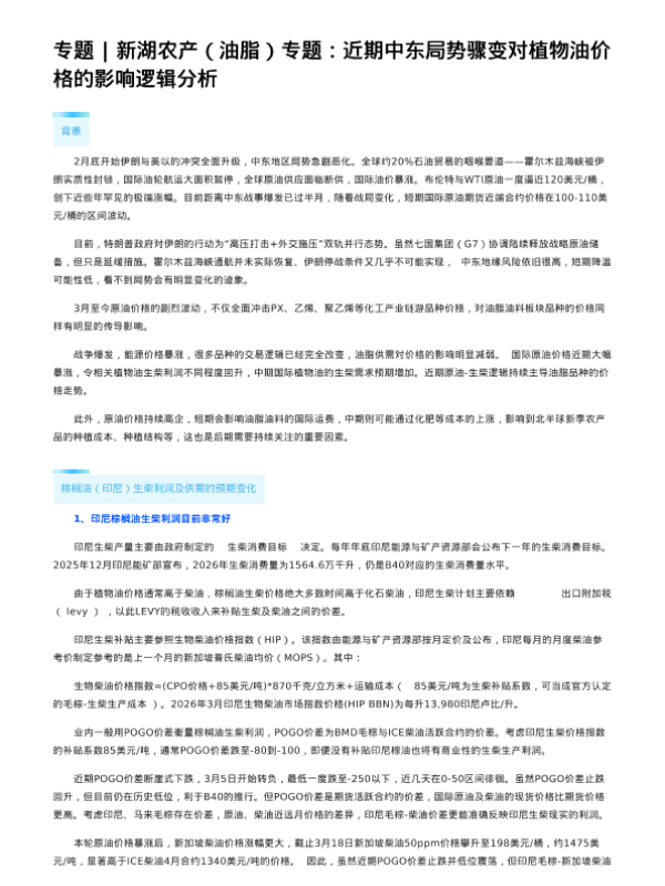【新湖期货研究所】【202603】近期中东局势骤变对植物油价格的影响逻辑分析-11页