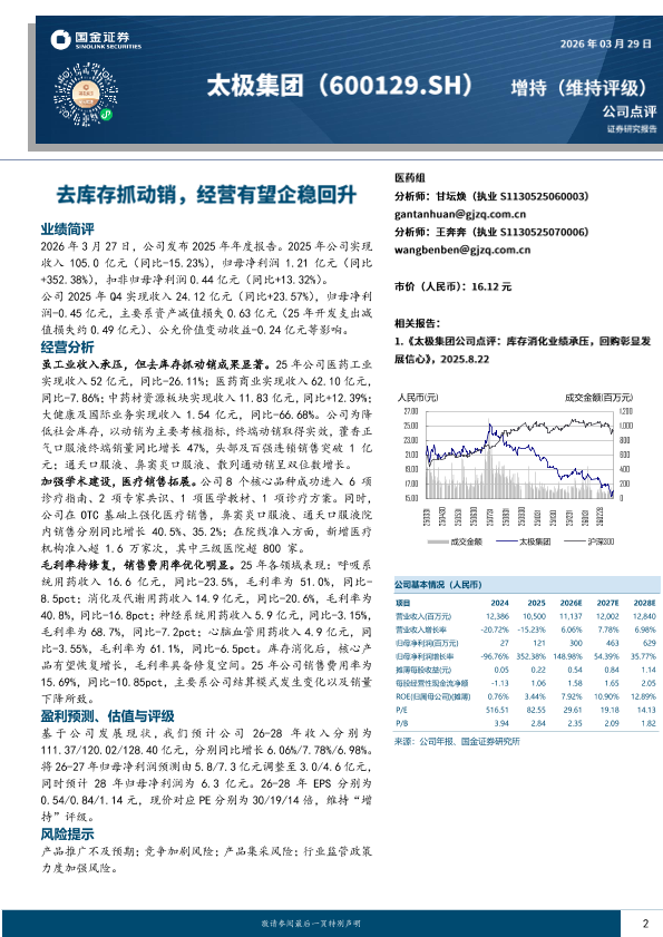 【国金证券】【202603】太极集团:去库存抓动销,经营有望企稳回升-4页
