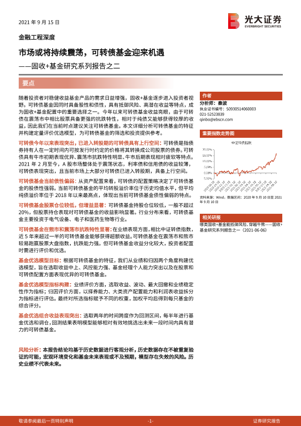【光大证券】【20210915】固收+基金研究系列报告之二:市场或将持续震荡,可转债基金迎来机遇-24页