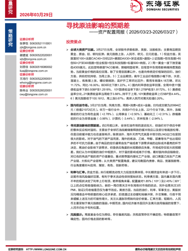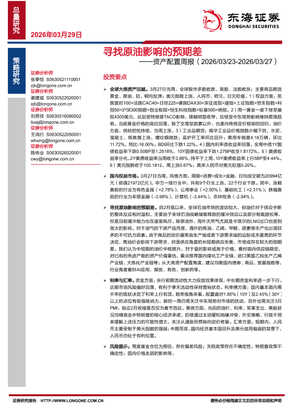 【东海证券】【202603】寻找原油影响的预期差——资产配置周报(2026/03/23-2026/03/27)-25页