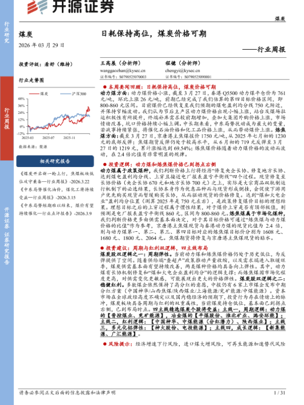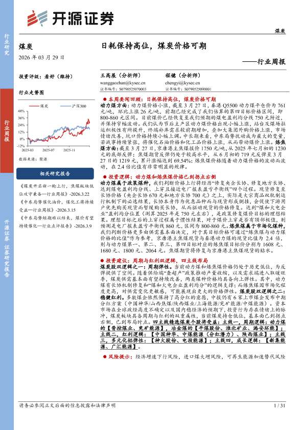 【开源证券】【202603】日耗保持高位,煤炭价格可期-31页