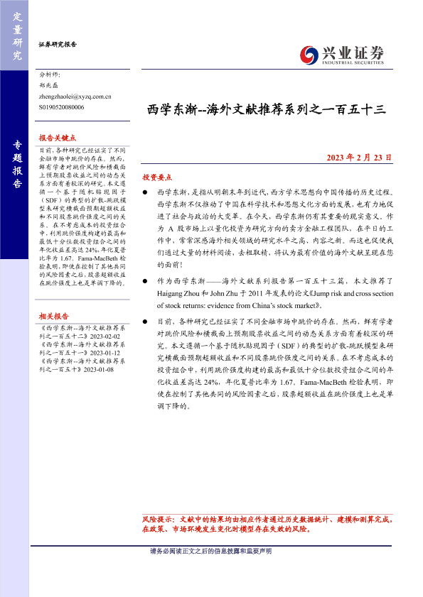 股票收益 西学东渐 跳价风险 随机贴现因子 金融市场