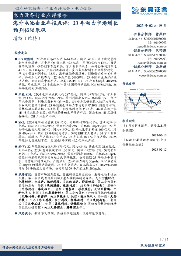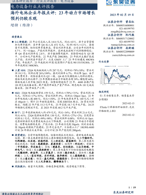 【东吴证券】【20230219】海外电池企业年报点评:23年动力市场增长预判仍较乐观-19页
