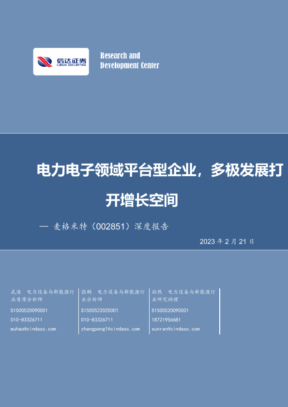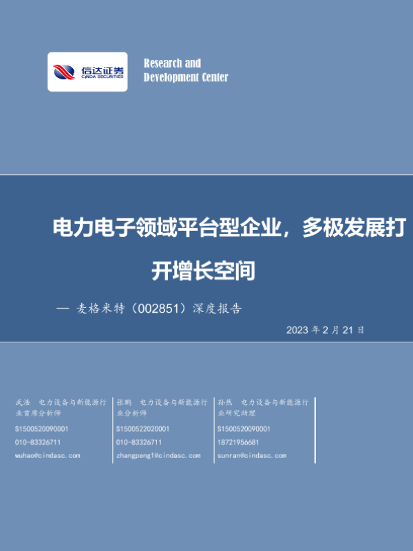 【信达证券】【20230221】电力电子领域平台型企业,多极发展打开增长空间-33页