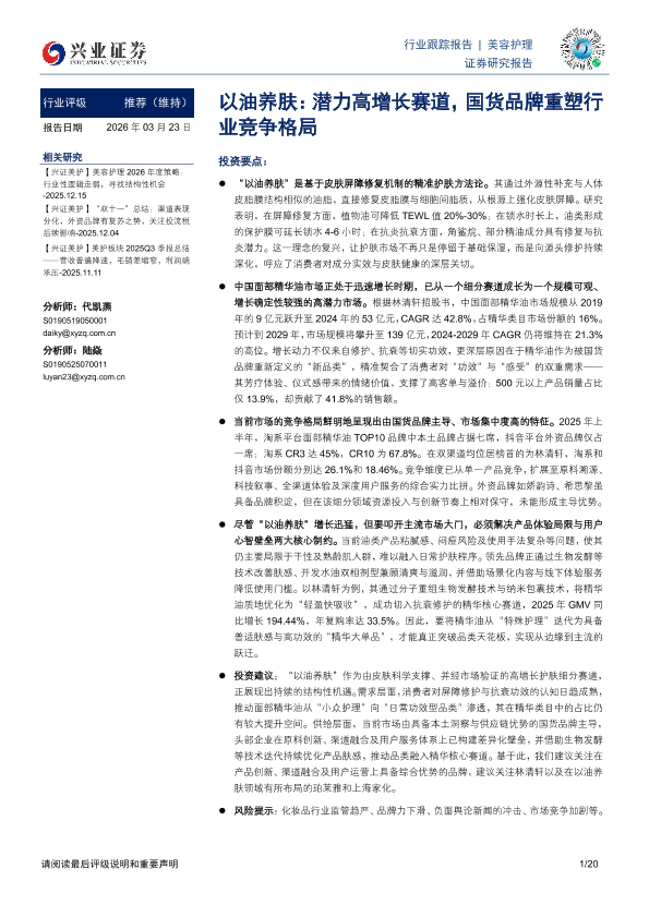 【兴业证券】【202603】以油养肤:潜力高增长赛道,国货品牌重塑行业竞争格局-20页