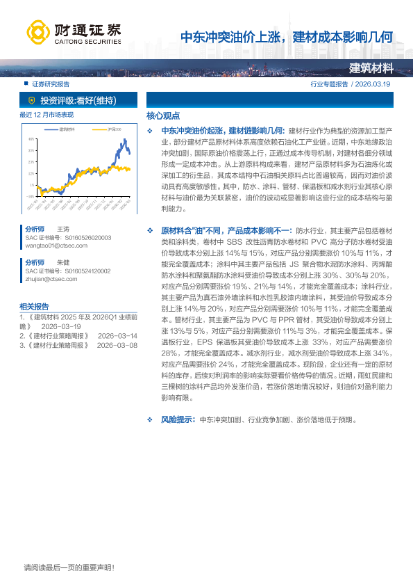 投资评级 成本传导 原油价格 行业分析 建材