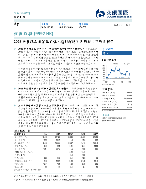 【交银国际】【202603】泡泡玛特(9992 HK):下调盈利预测与目标价,估值具吸引力,维持买入-7页