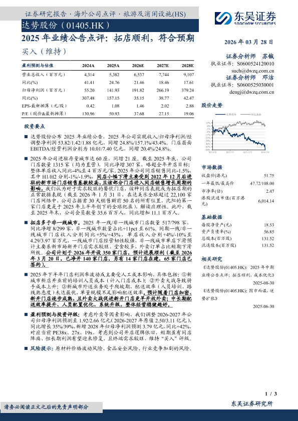 【东吴证券】【202603】达势股份(01405.HK):2025年业绩公告点评:拓店顺利,符合预期-3页