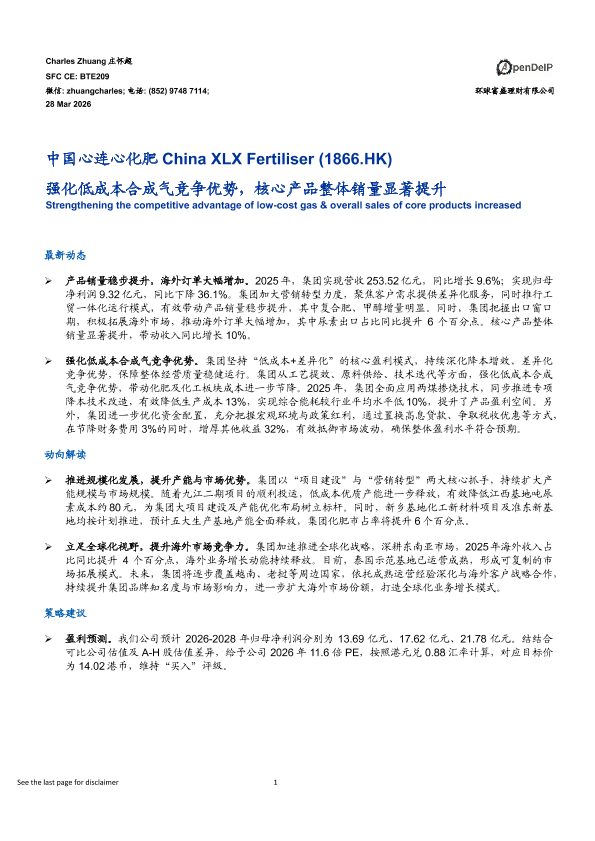 【环球富盛理财有限公司】【20260328】中国心连心化肥(1866.HK) 强化低成本合成气竞争优势,核心产品整体销量显著提升-5页
