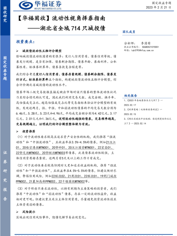 【华福证券】【20230221】湖北省全域714只城投债:流动性视角择券指南-16页