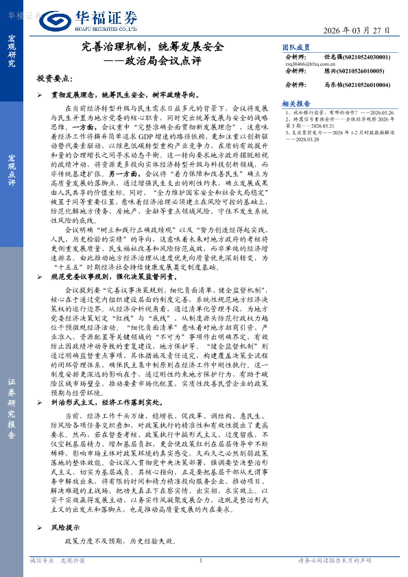 【华福证券】【202603】完善治理机制,统筹发展安全——政治局会议点评-5页