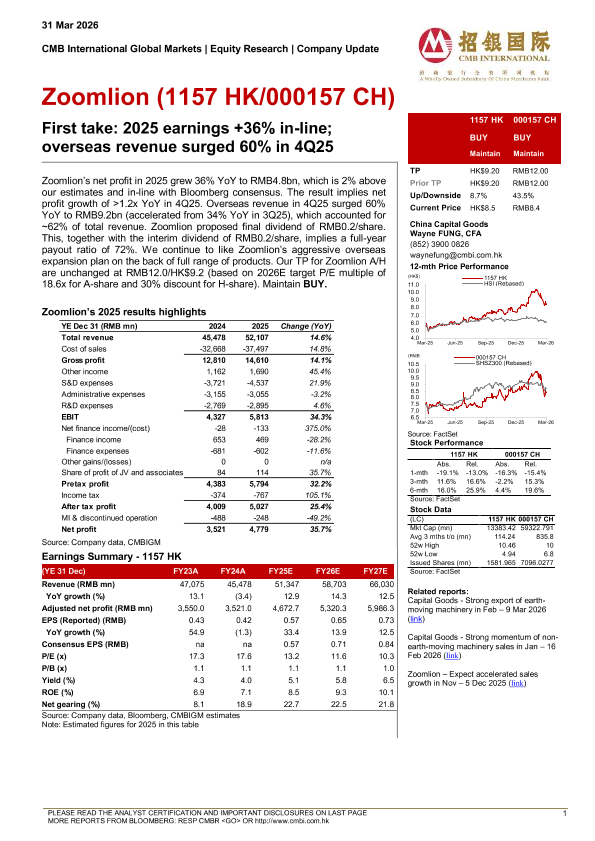 【CMB International Global Markets】【202603】Zoomlion(1157 HK/000157 CH)-First take 2025 earnings+36% in-line; overseas revenue surged 60% in 4Q25-5页