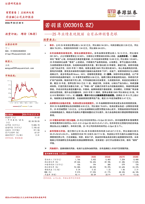 【华源证券】【202603】若羽臣(003010.SZ)——25年业绩表现靓丽自有品牌销售亮眼-3页