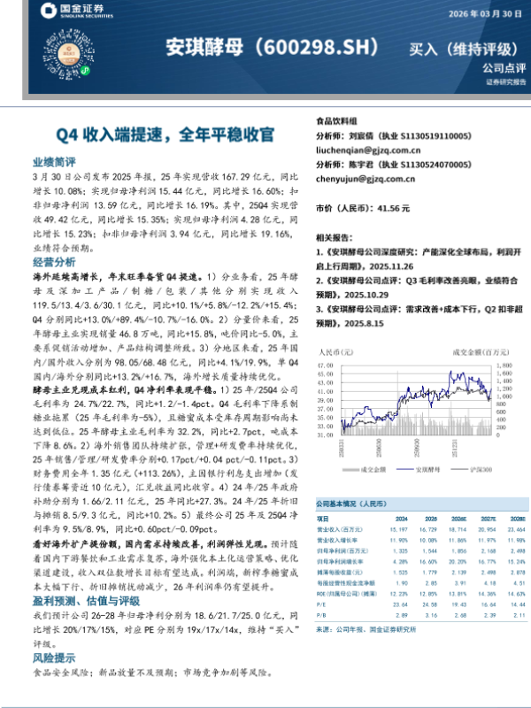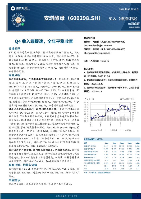 成本红利 海外扩张 安琪酵母 盈利预测 业绩分析