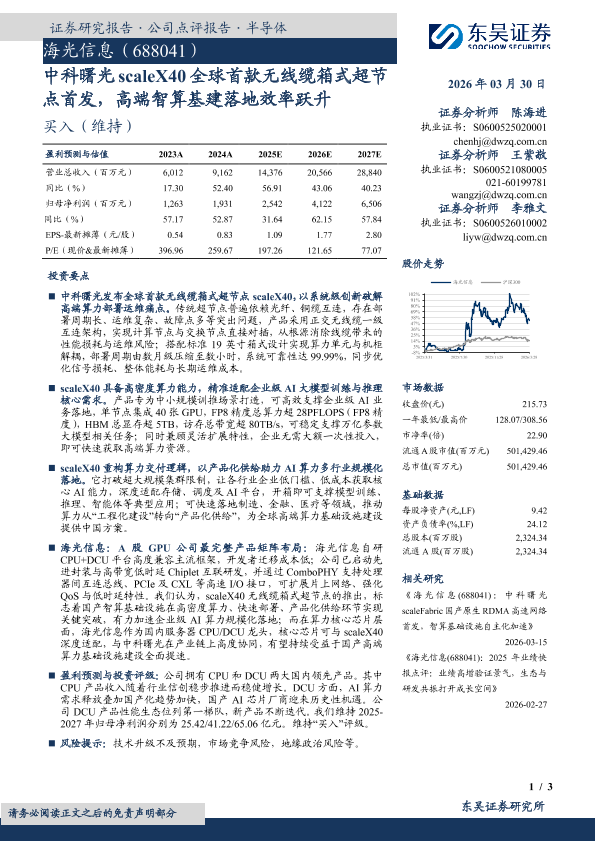 【东吴证券】【202603】中科曙光 scaleX40全球首款无线缆箱式超节点首发,高端智算基建落地效率跃升-3页