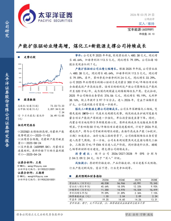 【太平洋证券】【202603】产能扩张驱动业绩高增,煤化工+新能源支撑公司持续成长-4页