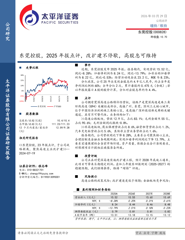 【太平洋证券】【202603】东莞控股,2025年报点评,改扩建不停歇,高股息可维持-4页