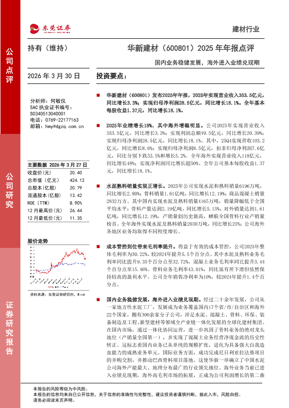 【东莞证券】【202603】华新建材(600801)2025年年报点评:国内业务稳健发展,海外进入业绩兑现期-3页