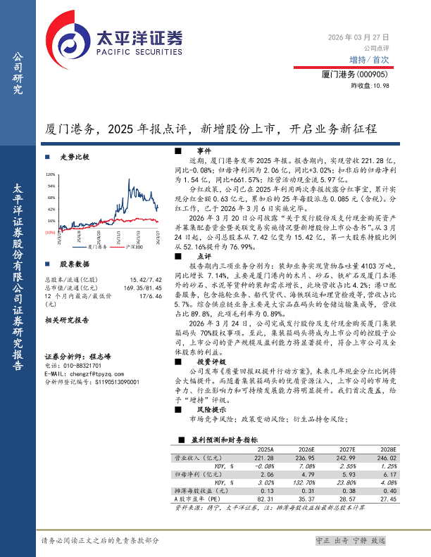 【太平洋证券】【202603】厦门港务(000905):2025年报点评,新增股份上市,开启业务新征程-4页