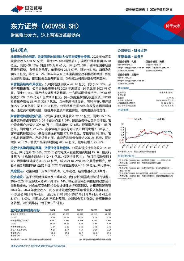 财富管理 非银金融 国企改革 东方证券 证券行业