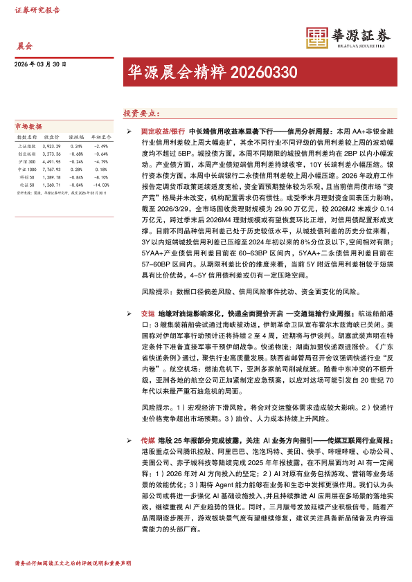【华源证券】【202603】华源晨会精粹20260330-16页