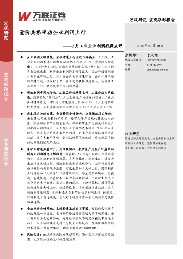 【万联证券】【202603】量价共振带动企业利润上行——2月工业企业利润数据点评-7页