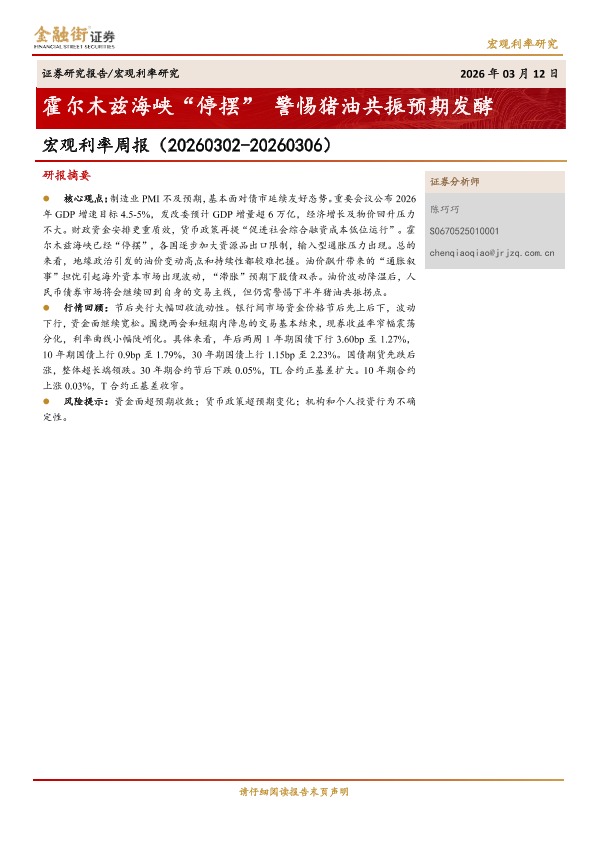 【金融街证券研究所】【202603】宏观利率周报(20260302-20260306)-10页
