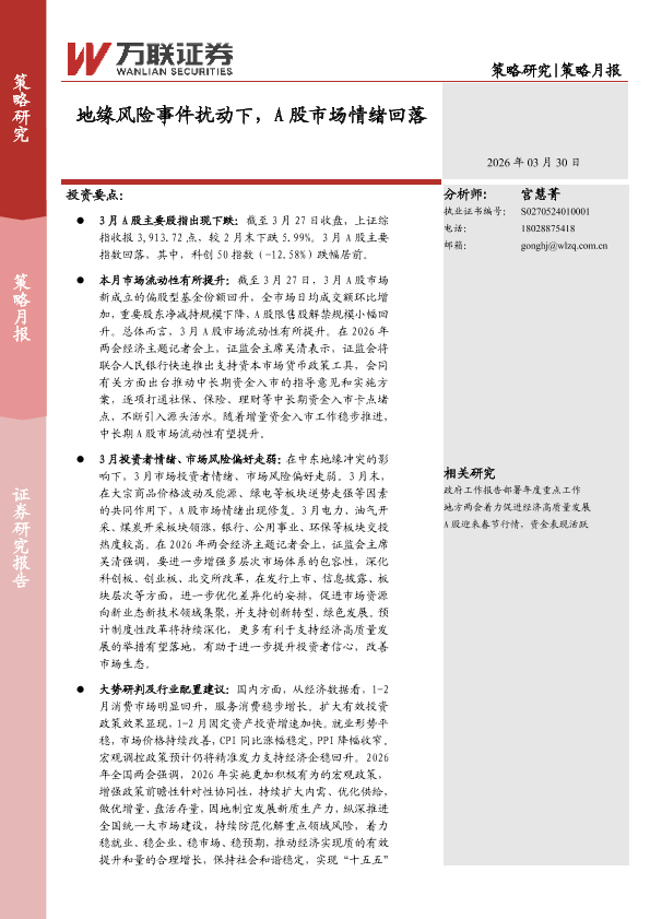 【万联证券】【202603】地缘风险事件扰动下,A股市场情绪回落-16页