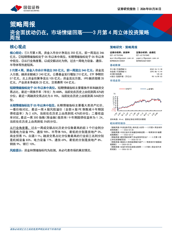 【国信证券】【202603】资金面扰动仍在,市场情绪回落——3月第4周立体投资策略周报-10页