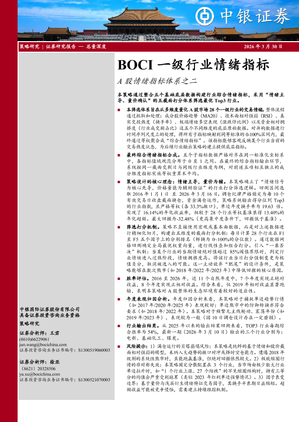 【中银证券】【202603】BOCI一级行业情绪指标-15页