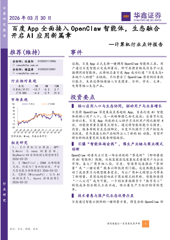 【华鑫证券】【202603】百度App全面接入OpenClaw智能体,生态融合开启AI应用新篇章-4页