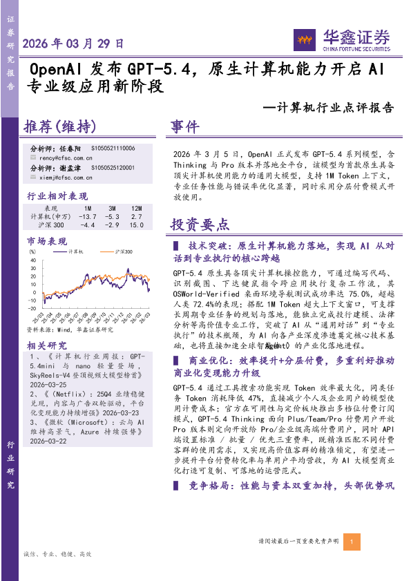 【华鑫证券】【202603】OpenA I发布GPT-5.4,原生计算机能力开启AI专业级应用新阶段-4页