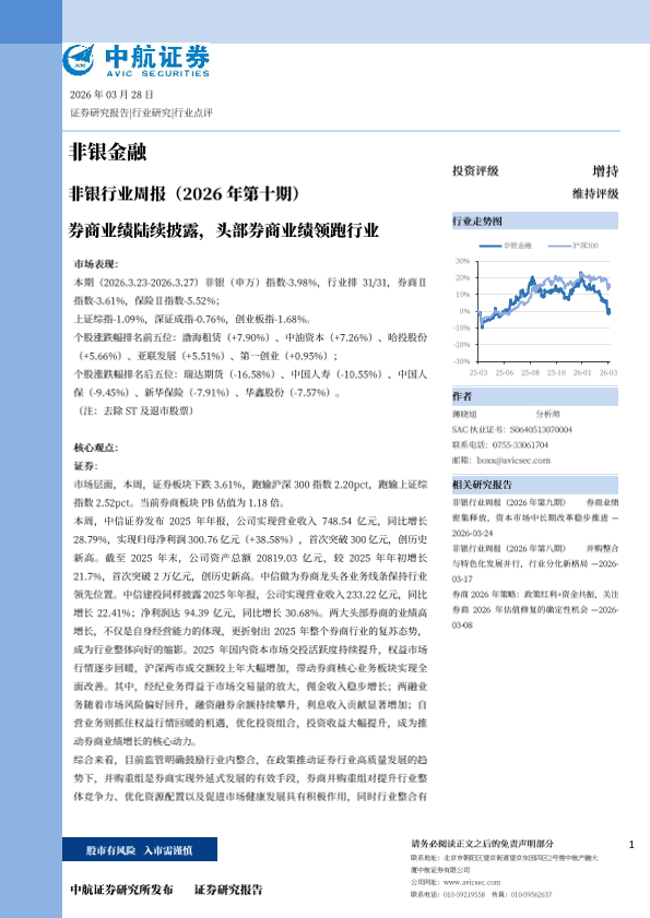 【中航证券】【202603】非银行业周报(2026年第十期):券商业绩陆续披露,头部券商业绩领跑行业-11页