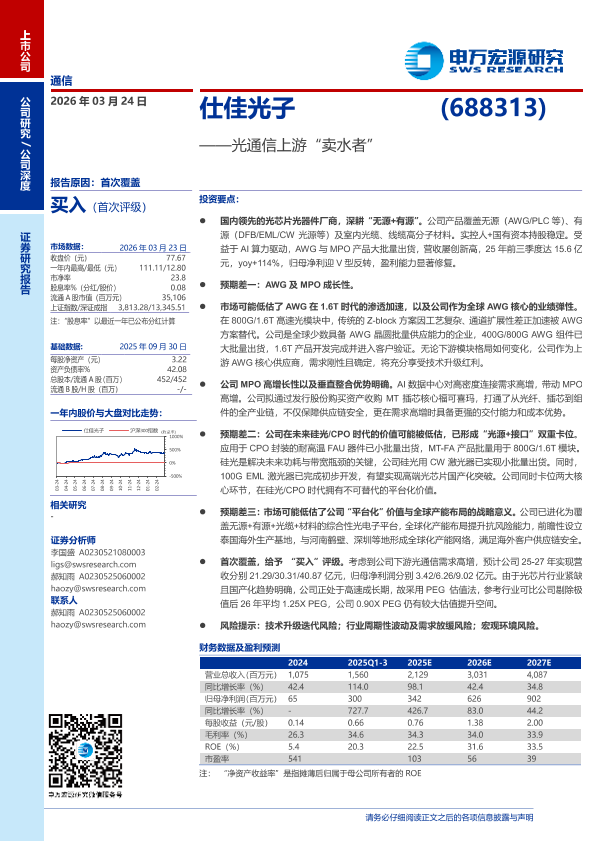 【申万宏源】【202603】仕佳光子(688313)光通信上游“卖水者”-35页