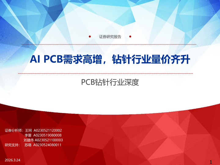 【申万宏源】【202603】PCB钻针行业深度:AI+PCB需求高增,钻针行业量价齐升-35页