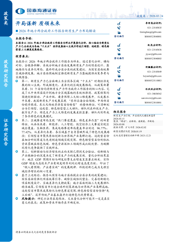 【国泰海通证券】【202603】开局谋新质领未来-2026年地方两会政府工作报告新质生产力布局解读-34页