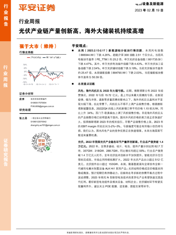 【平安证券】【20230219】电力设备及新能源行业周报:光伏产业链产量创新高,海外大储装机持续高增-26页