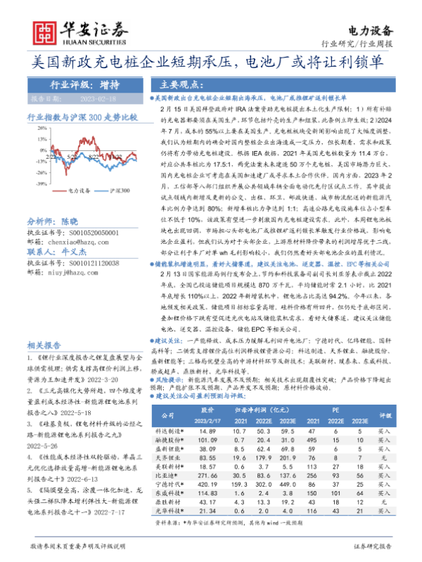 【华安证券】【20230218】电力设备行业周报:美国新政充电桩企业短期承压,电池厂或将让利锁单-27页