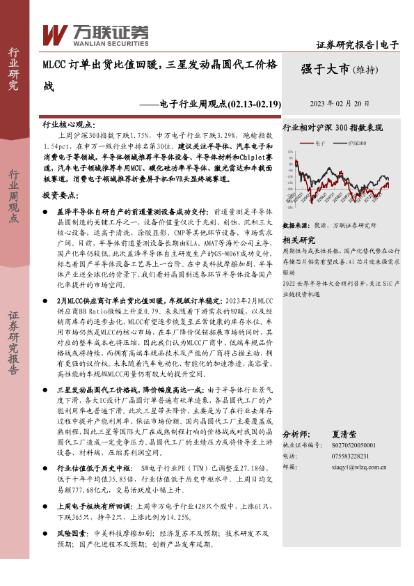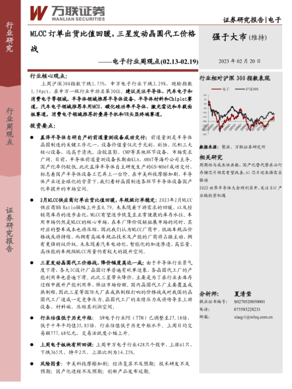 【万联证券】【20230220】电子行业周观点:MLCC订单出货比值回暖,三星发动晶圆代工价格战-17页