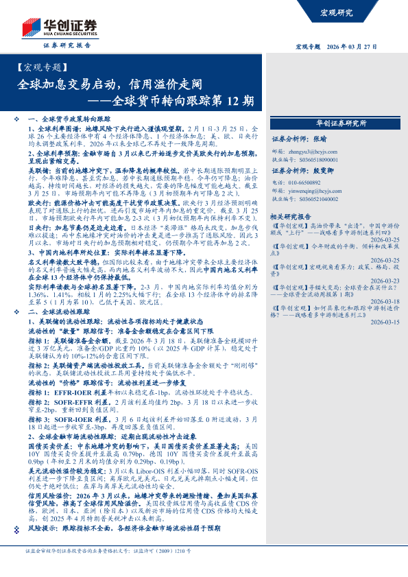 全球市场 货币政策 流动性跟踪 信用风险 地缘冲突