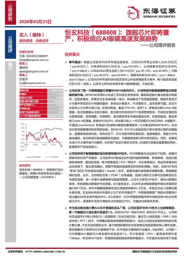 【东海证券】【202603】恒玄科技(688608):旗舰芯片即将量产,积极顺应AI眼镜高速发展趋势——公司简评报告-4页