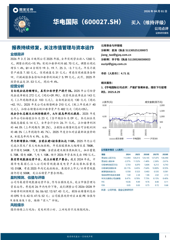 国金证券 电力热力燃气水生产 2026年 PDF 1.01 MB