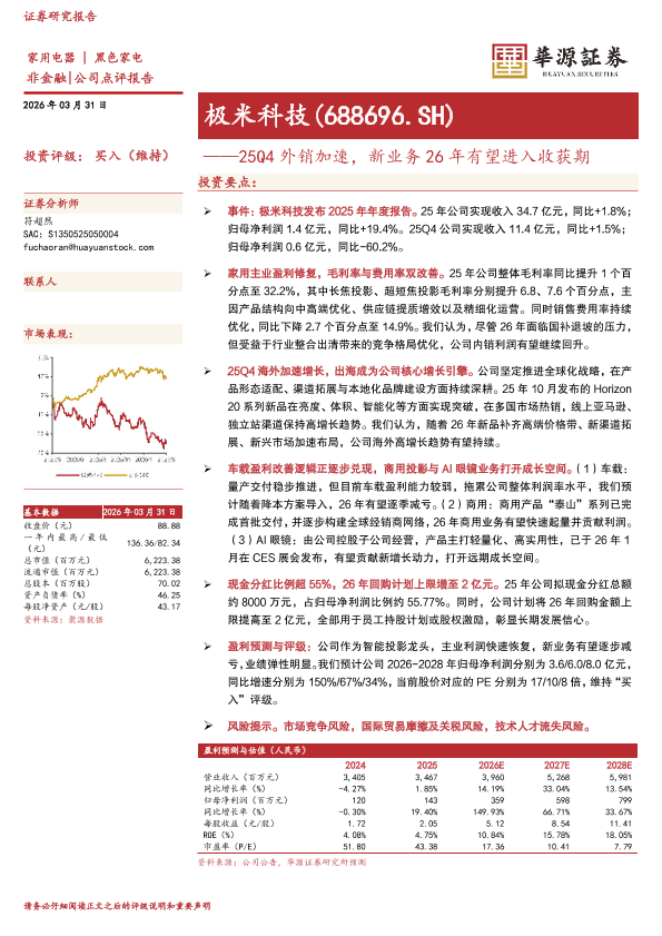 财报分析 智能投影 海外市场 车载业务 盈利预测