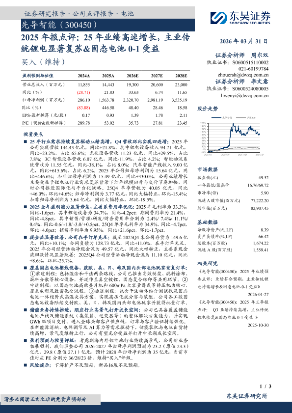 【东吴证券】【202603】2025年报点评:25年业绩高速增长,主业传统锂电显著复苏&固态电池0-1受益-3页