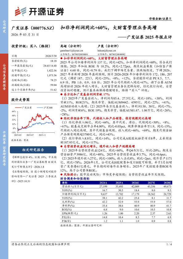 【开源证券】【202603】广发证券2025年报点评:扣非净利润同比+60%,大财富管理业务高增-4页