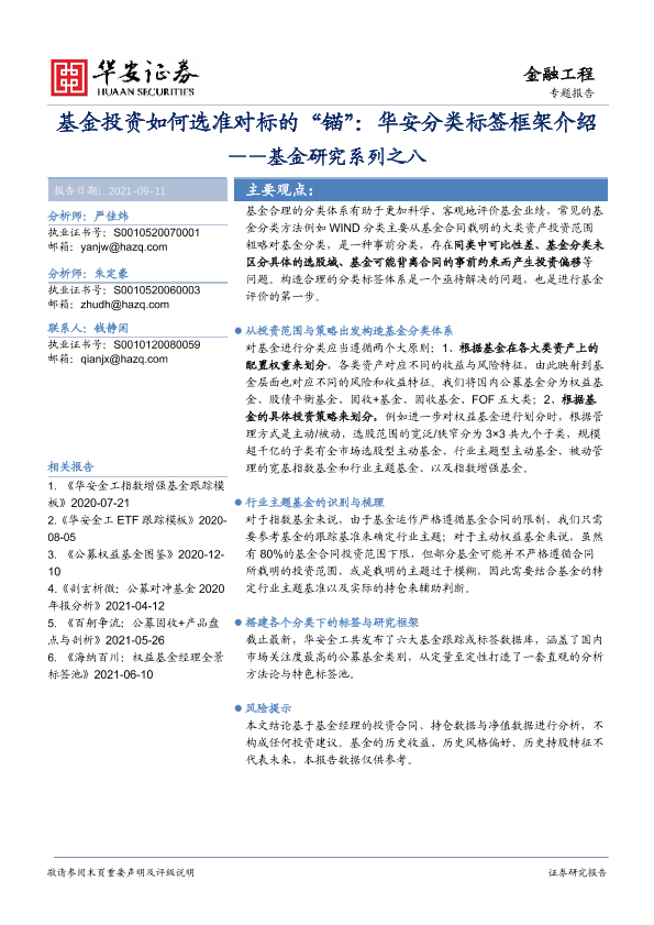 分类标签 华安证券 基金研究 金融工程 基金投资